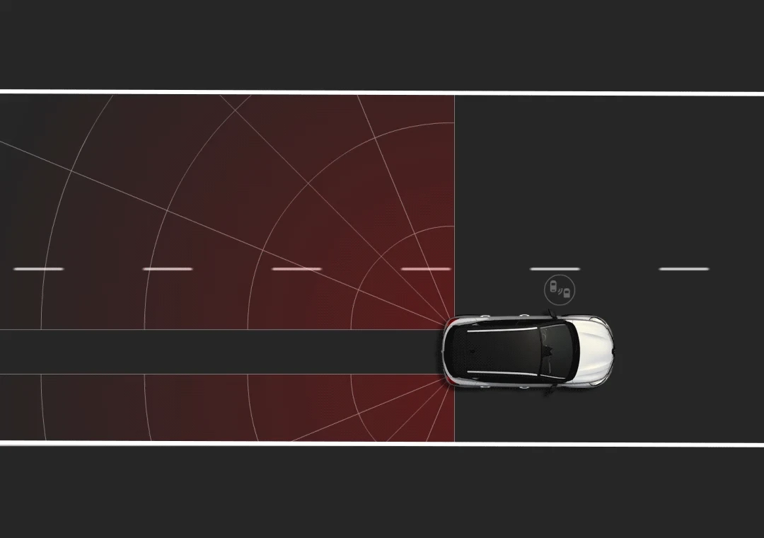 Dwa tylne radary boczne śledzą pojazdy zbliżające się od tyłu. Jeśli coś nadjeżdża, a Ty zamierzasz otworzyć drzwi, system ostrzeże Cię lampką w lusterku bocznym. Gdy nadjeżdżający pojazd jest bardzo blisko, otrzymasz dodatkowo migające podświetlenie dekoracyjne w drzwiach i ostrzeżenie wizualne na wyświetlaczu informacyjnym.